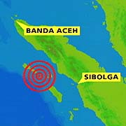 northwest of Sibolga, slightly southeast of the the 26 December
